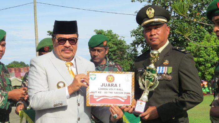 JUANGPOS.COM (NAGAN RAYA) – Bupati Nagan Raya, Dr. TR. Keumangan, SH.,MH menghadiri Upacara Peringatan Hari Ulang Tahun (HUT) ke-80 Tentara Nasional Indonesia (TNI). Kegiatan tersebut dilaksanakan di Lapangan Makodim 0116/Nagan Raya, Kompleks Perkantoran Suka Makmue, Minggu (05/10/2025).