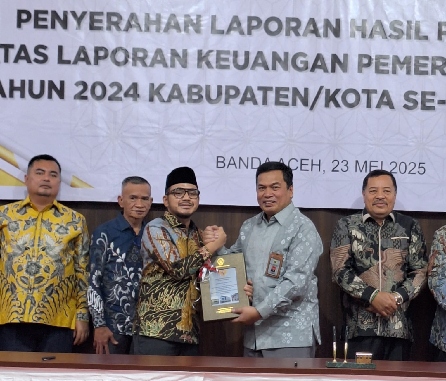 JUANGPOS.COM (NAGAN RAYA) – Ketua Dewan Perwakilan Rakyat Kabupaten (DPRK) Nagan Raya, Mohd. Rizki Ramadhan, hadiri acara penyerahan Laporan Hasil Pemeriksaan (LHP) atas Laporan Keuangan Pemerintah Daerah (LKPD) Tahun 2024 yang dilaksanakan oleh Badan Pemeriksa Keuangan (BPK) RI Perwakilan Aceh di Banda Aceh, Jumat (23/5/2025)
