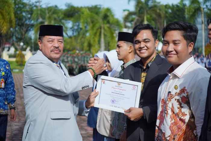 Pada momen pelaksanaan upacara, Bupati TRK juga menyerahkan piagam penghargaan kepada para pemuda dan pemudi berprestasi asal Kabupaten Nagan Raya yang telah mengharumkan nama daerah.
